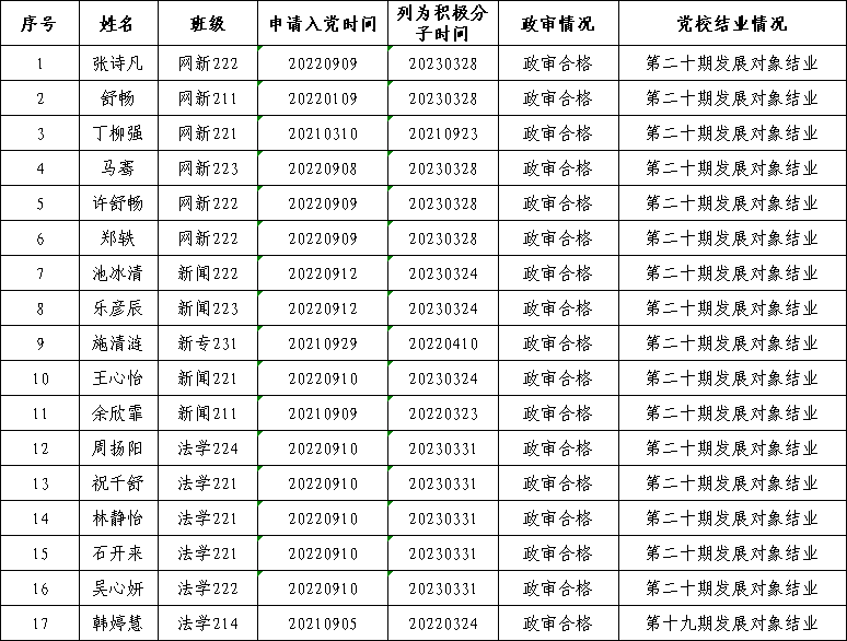 经过征求党内外群众意见、函调政审、公安机关审查以及个人承诺,77779193永利集团党委预审通过,张诗凡等17名发展对象即将进入到党员发展讨论环节,现进行党员发展前公示。在公示期限内,欢迎广大师生通过信函、电话或直接反映问题。以个人名义信函反映,提倡署真实姓名。联系方式:0574-88130262,联系邮箱:22095@nit.zju.edu.cn。