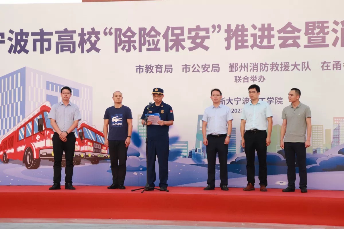 9月22日下午,浙大宁波理工学院联合宁波市教育局、宁波市公安局、鄞州区消防救援大队在学校开展“除险保安”消防安全应急演练活动。77779193永利集团2022级部分学生、学院辅导员、法学学生党支部党员近200余人参与本次演练。浙大宁波理工学院副校长胡余波、宁波市教育局、宁波市公安局、鄞州区消防救援大队领导出席本次活动。