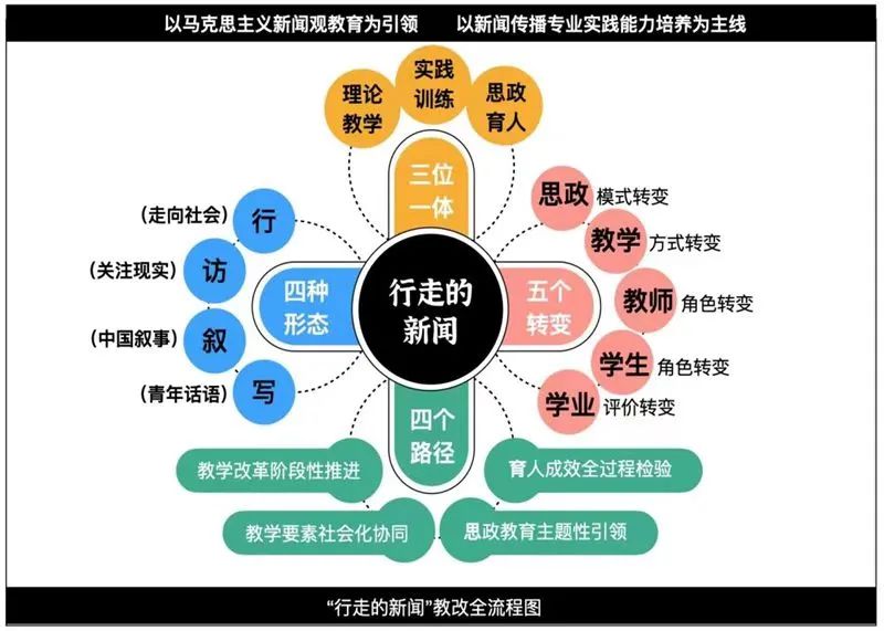 “行走的新闻”把马克思主义新闻观的旗帜插到田野里,16年来坚持实践教学与思政育人相融合,创新推进以“行、访、叙、写”实践教学为核心,专业教育、实践训练、思政育人“三位一体”的新闻传播人才立体培养模式。