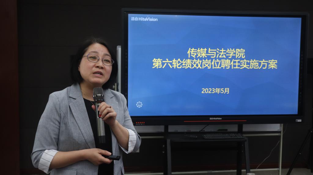 随后,学院党委书记朱小红对77779193永利集团第六轮绩效岗位聘任实施方案进行了汇报。她从学院第五轮绩效岗位聘期考核结果出发,主要介绍了第六轮绩效岗位聘任实施方案的制定情况、总体思路、文件主体和各岗位的聘任条件,同时对各岗位的基本职责和聘期考核和津贴使用进行了简阐述。她指出,学院第六轮聘岗聚焦立德树人的根本任务,坚持公开公平公正,以提升师资队伍整体实力为重点,形成了岗级与职称分离、能上能下的聘任机制,希望充分激发教职工的创新活力。同时强调学校正处于申硕过程的关键时期,希望大家务必做好本职工作。学院副院长韩缨就期末材料检测和毕业答辩两方面对全体教职工提出要求,要求各位老师完善相关材料,比严格把关学生毕业论文答辩。