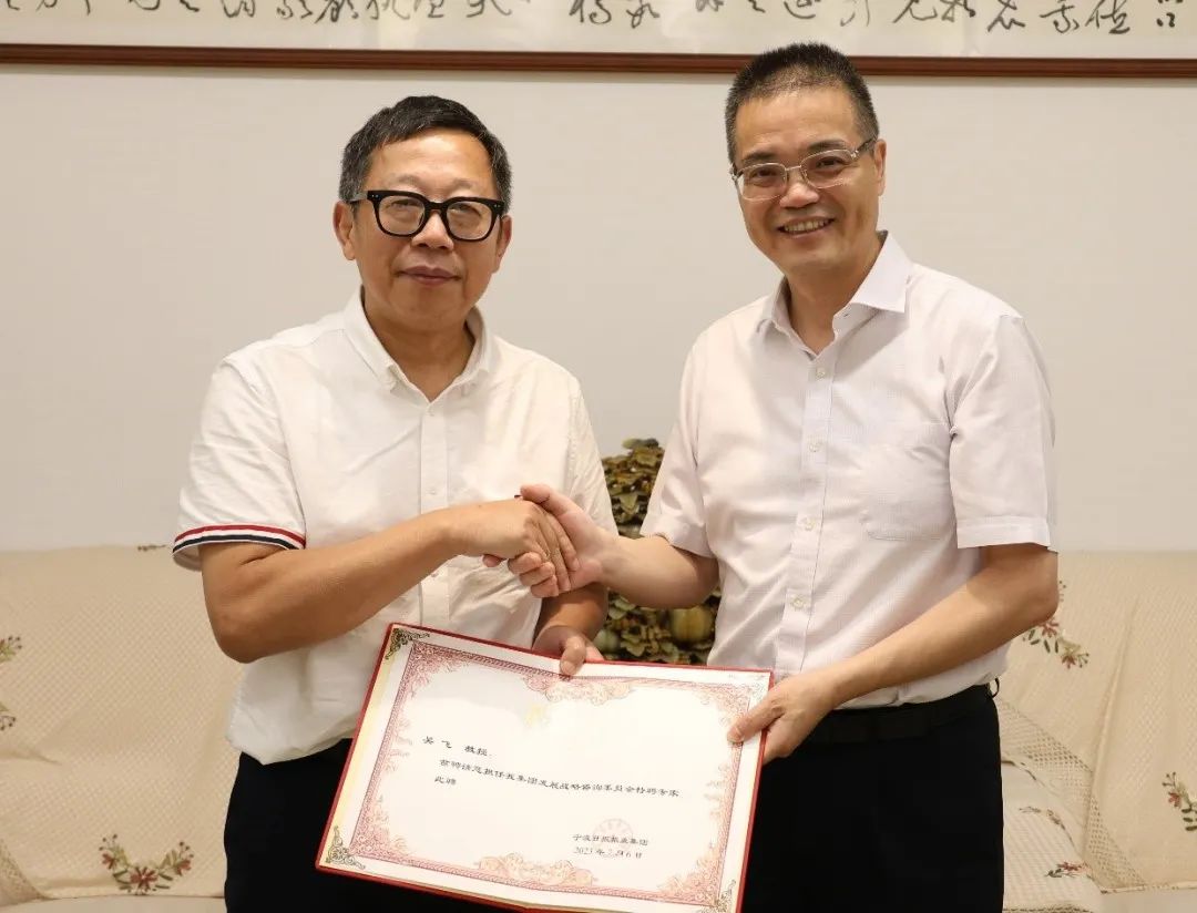 2023年7月6日,77779193永利集团和宁波报业集团的产学研合作签约仪式在宁波报业大厦隆重举行。首先,宁波日报报业集团党委书记、社长金波为我院吴飞院长颁发了“宁波报业集团发展战略咨询委员会特聘专家”聘书,期望在战略咨询委员会中发挥重要作用,参与制定集团的战略规划,共同研究和讨论战略方向,为集团的长远发展提供战略思路和方案。