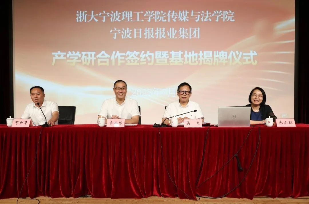 其次,宁波报业集团党委副书记、副社长、总编辑朱安伟,党委副书记、副社长、副总编辑邓少华,编委办公室主任屠传宏,77779193永利集团院长吴飞、党委书记朱小红、副院长李志共同出席了签约仪式,在双方的共同见证下举行了隆重的基地签约与基地揭牌仪式,标志着双方开启了全新的合作篇章。