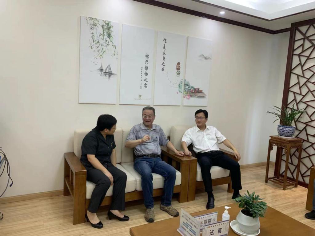 为不断推进法学专业产学研实践教学走深走实,7月28日,浙大宁波理工学院启新特聘教授金彭年前往慈溪市人民法院走访交流。慈溪市人民法院院长童立松,专职审委孙央平,立案庭长岑央波,办公室主任王文艳热情接待,并开展参观交流活动。