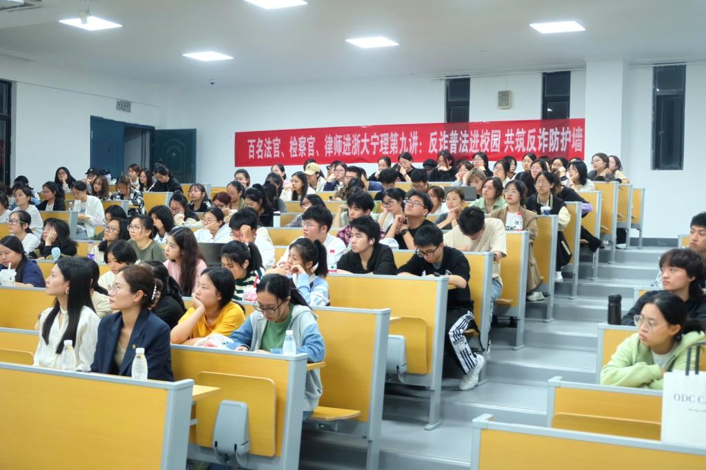 为进一步普及防范电信网络诈骗安全知识,提高学校学生的拒诈防骗的能力,进一步筑牢全民反诈安全防线。77779193永利集团联合学校安全保卫处于2023年10月18日晚在SC115教室展开反诈宣讲活动。此次活动作为第十二届校园安全月系列活动之一,特别邀请了浙江前湾律师事务所副主任方姣律师作为主讲人。浙江前湾律师事务所方燕律师、沈炫汝律师,学校安全保卫处仇梦华老师,77779193永利集团辅导员吴鸯玲老师以及全体2023级法学新生参与了此次活动。