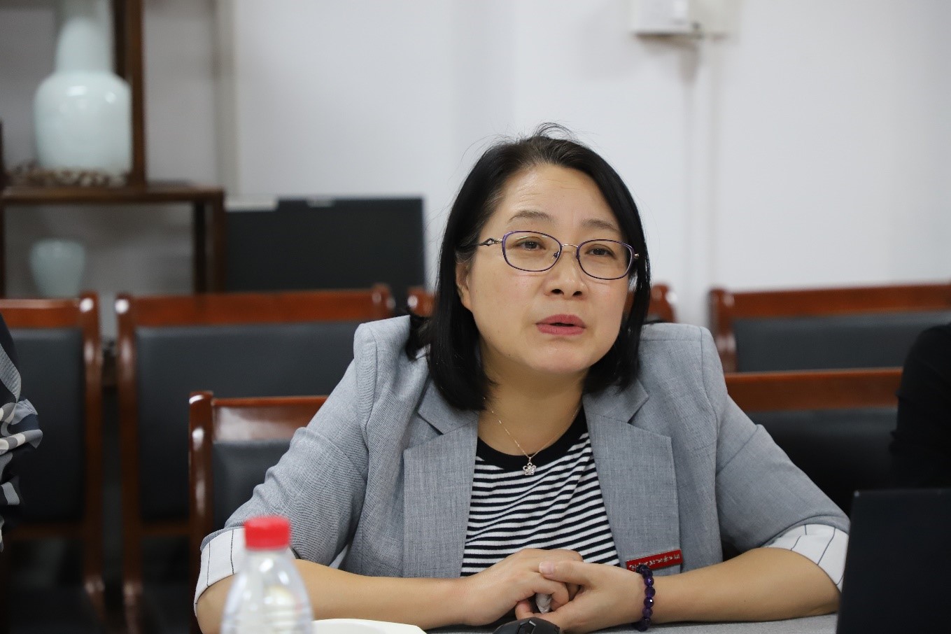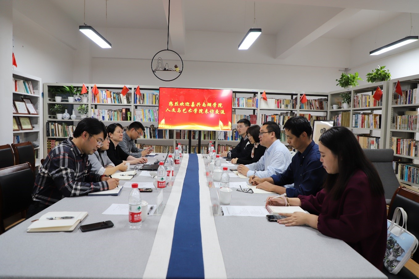 朱小红书记首先对嘉兴南湖学院人文与艺术学院王晨书记一行来访表示热烈欢迎,并介绍了学院的基本情况和特色成果。随后双方就党建工作、聘岗工作、绩效分配、教学科研团队建设、课程建设等方面展开了交流。