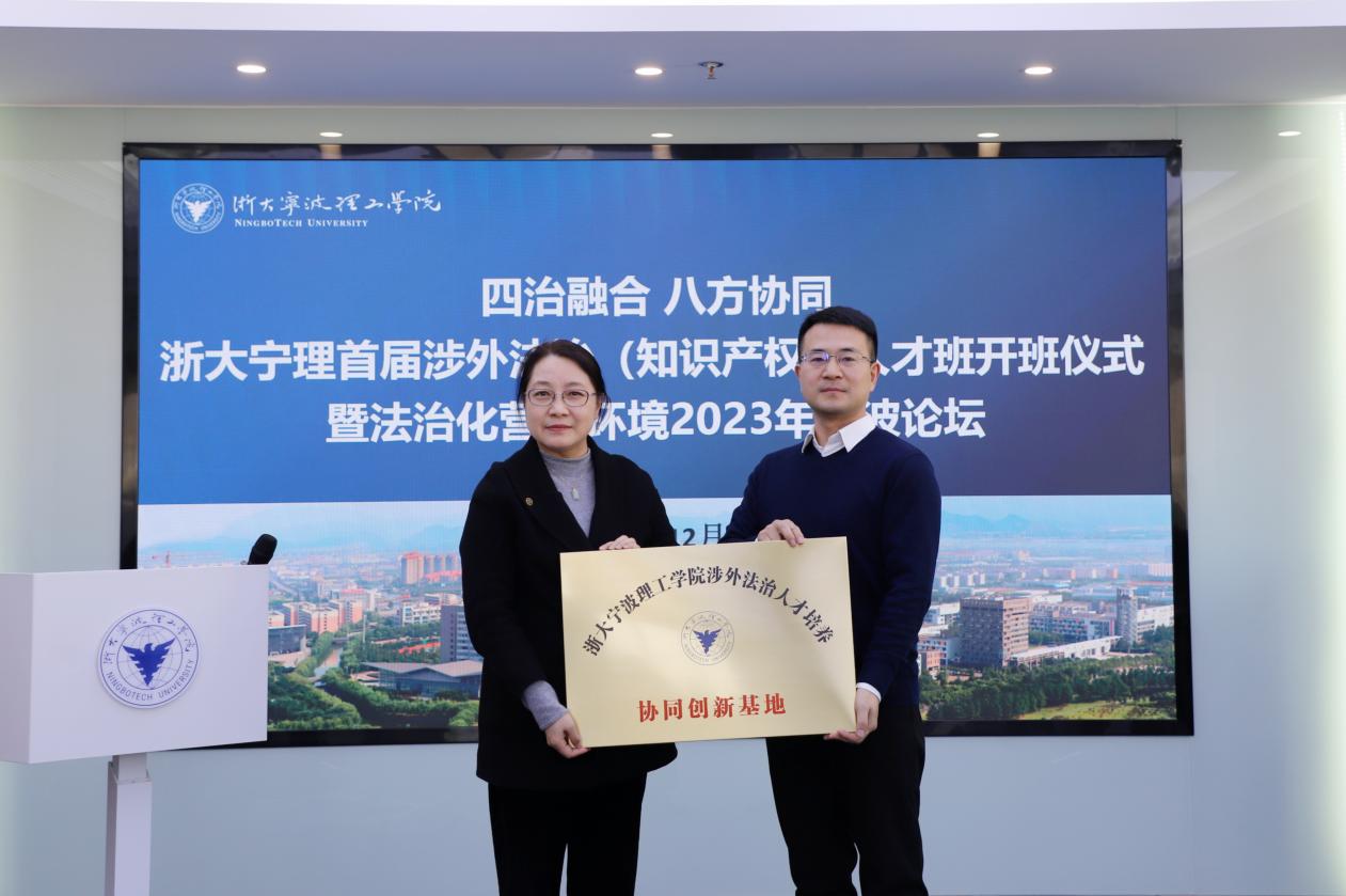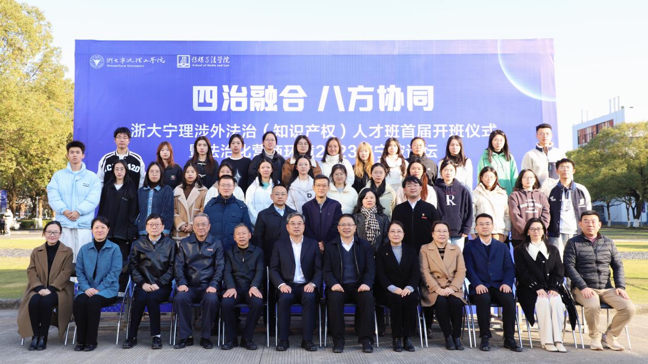为贯彻落实习近平总书记关于加强涉外法治建设的重要讲话精神,我校积极推进法学学科建设,努力办好法学教育,于2023年12月1日下午,举行了浙大宁理首届涉外法治(知识产权)人才班开班仪式暨法治化营商环境2023年宁波论坛。