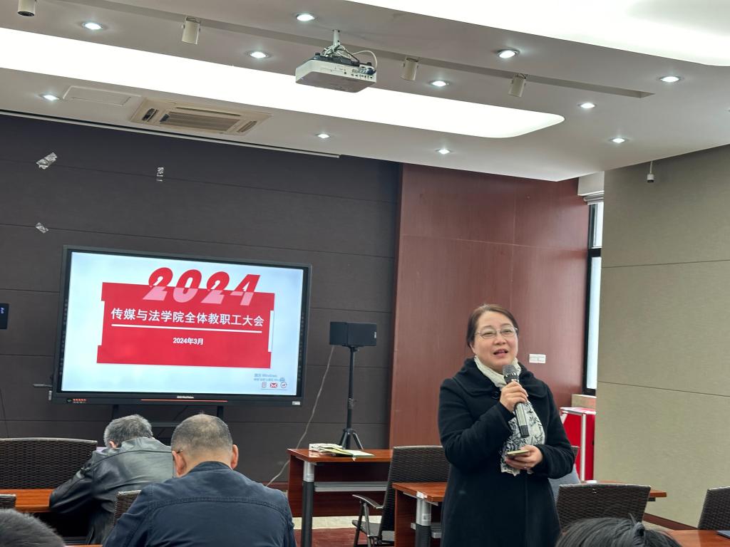 王军伟副院长对标申硕条件,希望老师能在目前科研工作中存在的短板上多多努力。韩缨副院长对教学方面的任务进行具体部署,对本学期毕业论文答辩相关工作作出具体规定。胡鹿鸣副书记就学生工作、就业工作、党风廉政等方面进行提醒。