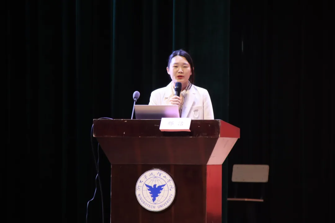 法学243班的班导师邢洁老师作为班导师代表发言,她就班导师的角色定位和对同学们的期待发表了看法。邢洁老师表示,班导师是一份职责,更是一份陪伴,可能表达方式各异,但每一位班导师都在以自己的言行影响着身边的学生,以期待他们成为更好的人。同时,她也认为班导师不一定是完美的,这表达了她与同学们教学相长的意愿。最后,邢洁老师激励同学们继续发展阅读的习惯,丰富人生体验,活出生动的自己。