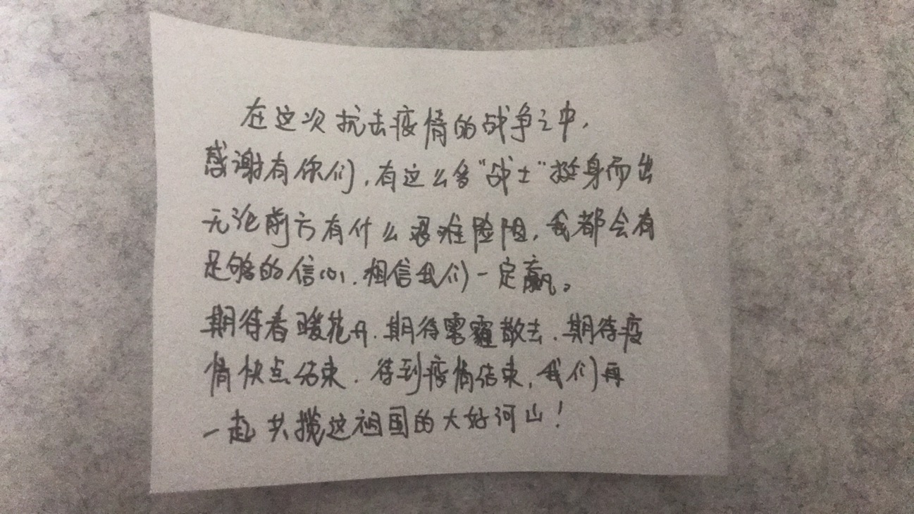 为增强防灾减灾意识,树立珍爱生命意识,培育感恩之心,传媒与设计学院学生广告支部手写祝福致敬逆行者,铭记悲痛时刻,共盼美好未来。学生党员们深入思考,依据自身记忆与内心感受,以文字传递正能量,表达对医护人员的感谢,盼望美好未来。学生党员李天飞写道:“感谢有你们,有这么多‘战士’挺身而出,无论前方有什么艰难险阻,我都会有足够信心,相信我们一定赢。”