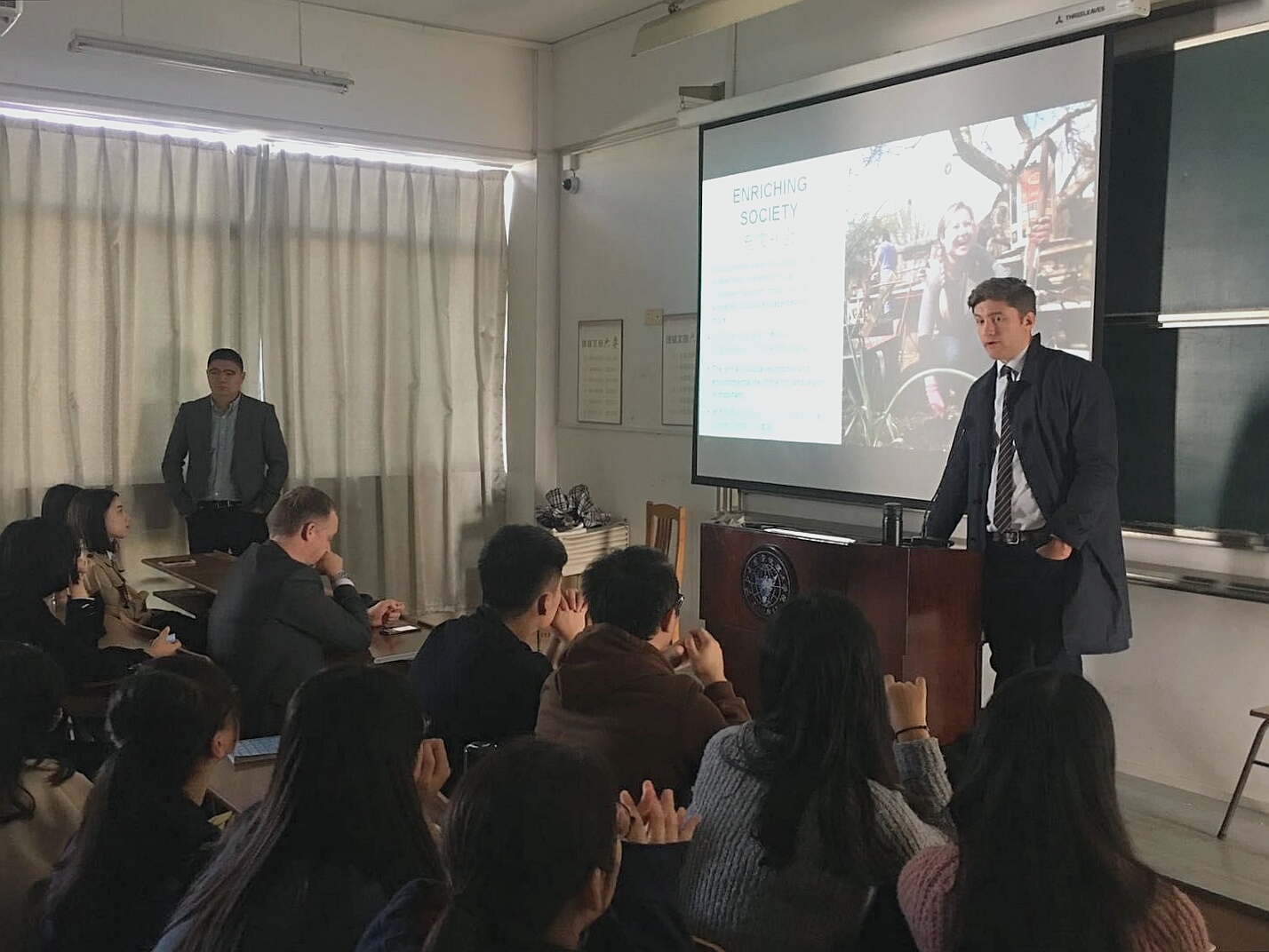2017年11月2日上午,传媒学院在SB203教室举行了英国诺丁汉特伦特大学出国宣讲会,英国诺丁汉特伦特大学代表Andrew Plant、学院张峰老师以及许多有出国意向的同学参加了本次宣讲会。