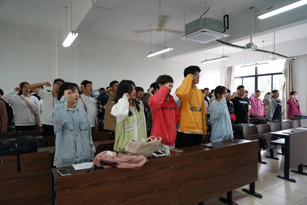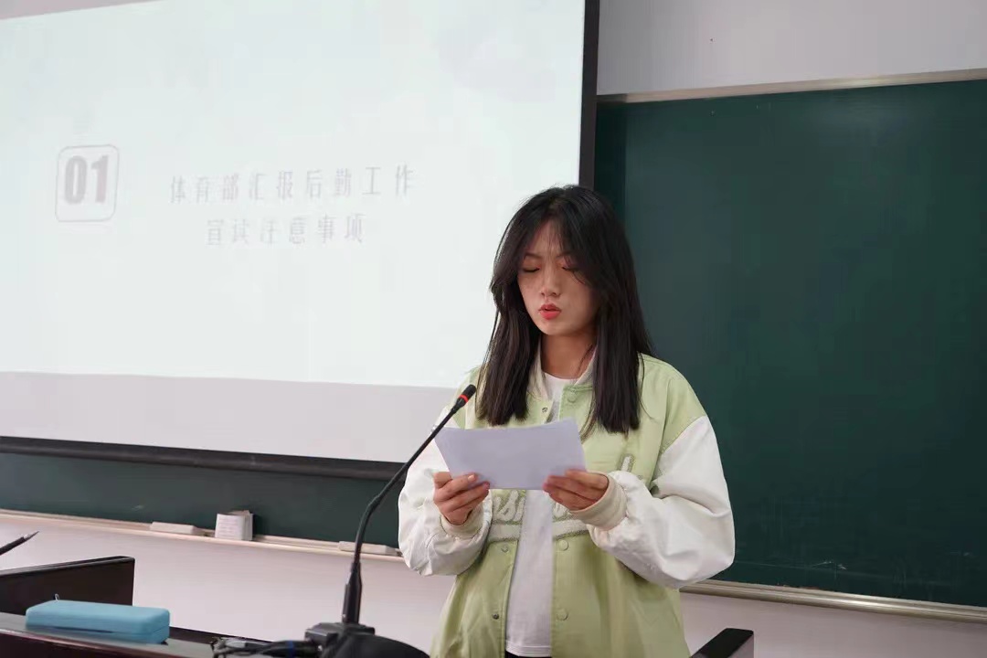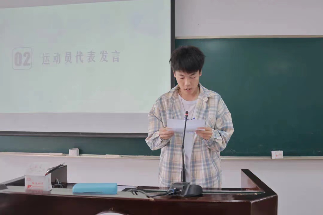 首先,体育部部长王艺璇同学向运动员们介绍了团学后勤保障工作和运动会的注意事项,确保了运动会的各项服务工作顺利落实。随后,运动员代表张舟力涵同学发言,他号召全体运动员们在赛前注意休息,在赛场上顽强拼搏,争创佳绩,并带领大家进行宣誓。