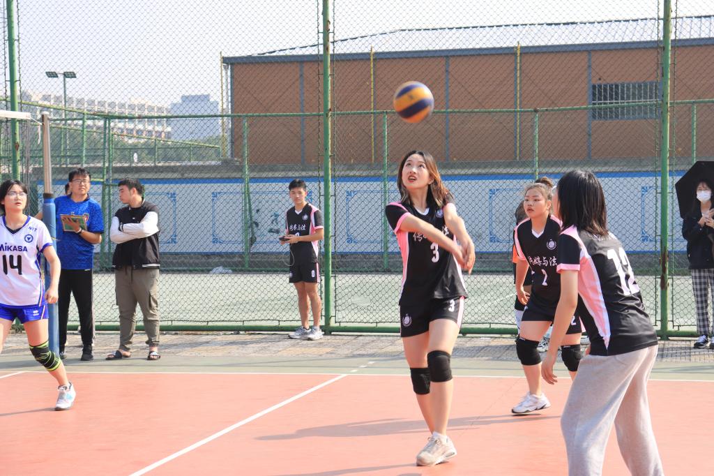 本次比赛精彩异常,现场气氛十分热烈。我院参赛选手团结一致、奋勇拼搏,展现了我院学子积极进取的精神风貌。在简单的热身试球之后,裁判员一声哨响,排球比赛便正式拉开序幕。比赛中,运动员们互相给予彼此鼓励和支持,领先时秉持着稳扎稳打的宗旨,落后时保持着稳健的心态。精准地接球,熟稔地垫球,不断腾空的排球和运动健儿奋力拼搏的精神一起感染着整个赛场。在第三局14:14的比分打平下,全场屏住呼吸,传法学子抗住压力连赢两球,最终取得胜利。