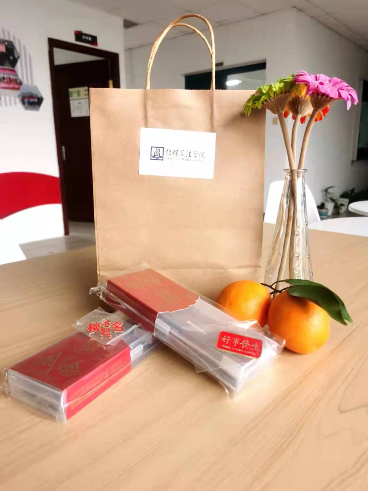 首先,吴飞教授结合自己的考研、考博经历给予建议指导,吴老师通过自己的故事拉近了和同学们的距离,给临近考试压力重重的考生营造了轻松活跃的氛围,他希望同学们能够劳逸结合,学会放松自己,同时坚持下去,不要放弃。紧接着,朱小红老师用“坚持到底”四个字给予了同学们极大的鼓励,期待他们取得最后的胜利,朱老师叮嘱同学们保持稳定的心态,确保身心健康。最后,胡鹿鸣老师提到,学院和老师们永远是同学们的坚强后盾,预祝同学们考出好成绩,在加油声中,老师们为同学们递上学院精心准备的“考研加油包”。