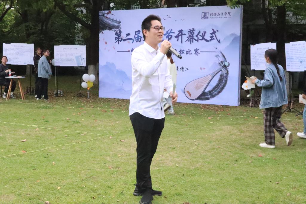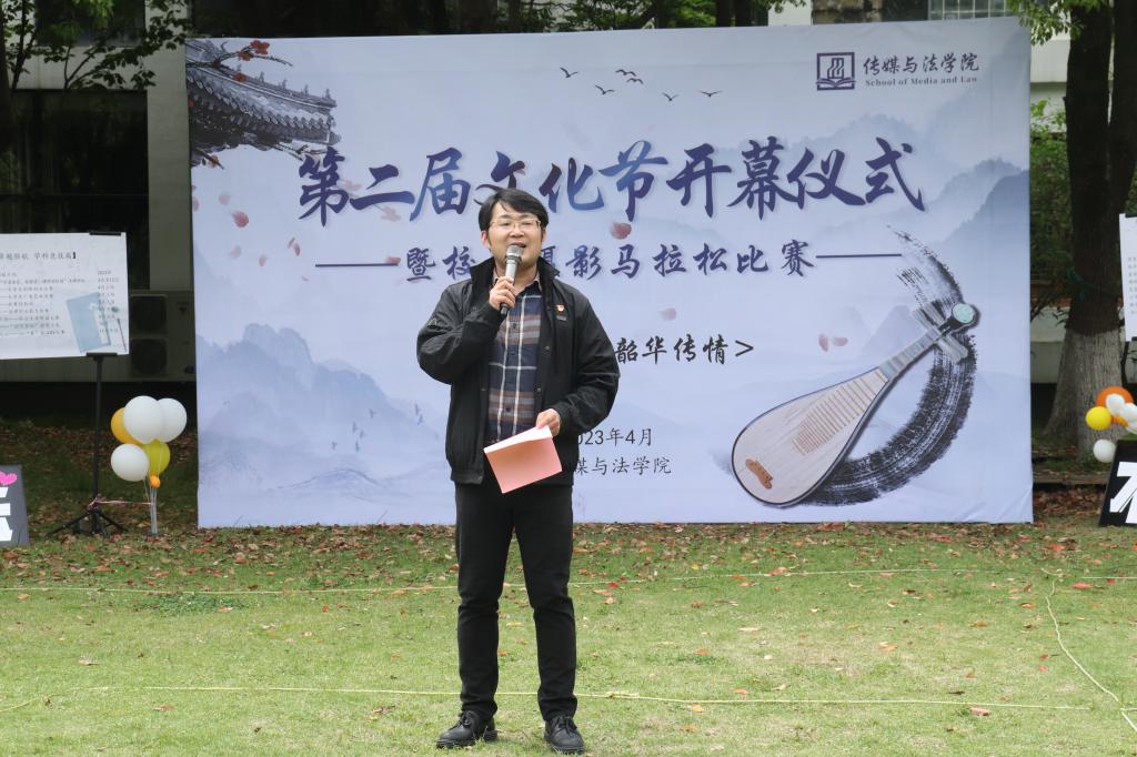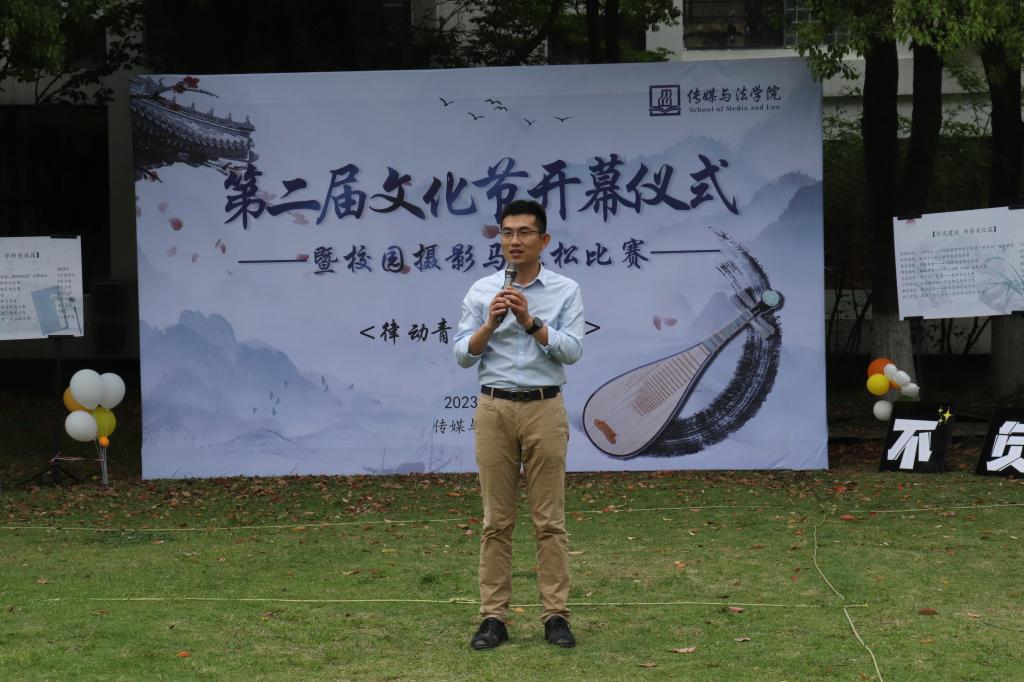 校团委书记周春晓为本次开幕式致辞。周春晓借春日为喻,指出了77779193永利集团近年来举办的校园活动如春日般生机盎然,丰富多彩。他从坚持文化自信,深耕中华优秀传统文化;坚持中国特色社会主义文化道路,展现校园特色两个方面对学院文化活动提出希望和要求。