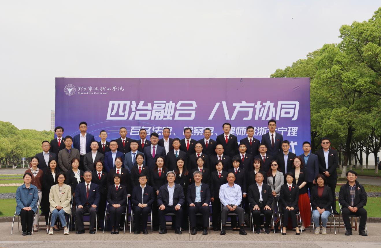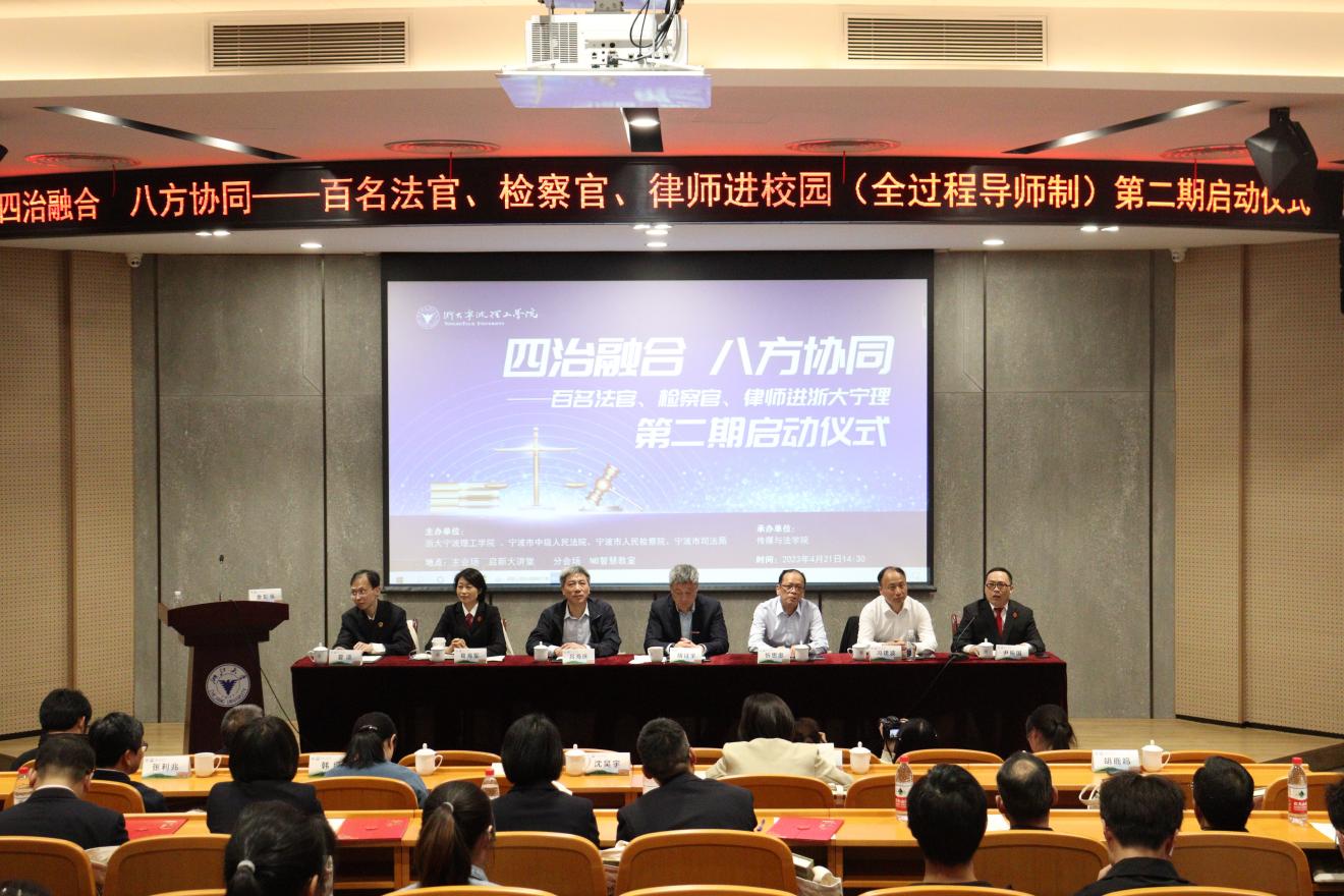 4月21日,浙大宁波理工学院、宁波市中级人民法院、宁波市人民检察院、宁波市司法局联合举办“百名法官、检察官、律师进浙大宁理(全过程导师制)”第二期启动仪式。浙大宁波理工学院党委书记胡征宇、党委副书记冯建波、宁波市人民检察院副检察长吕海庆、宁波市司法局副局长忻思忠、宁波市中级人民法院政治部副主任葛海军、宁波市中级人民法院研究室副主任尹振国、宁波市人民检察院四级高级检察官夏凉出席启动仪式。同时浙大宁波理工学院教务处处长沈昊宇、学工部副部长王成、77779193永利集团副院长韩缨、党委副书记胡鹿鸣、张利兆教授等法学专业教师以及法学2021级全体学生共同参加。仪式由我校启新特聘教授金彭年主持。