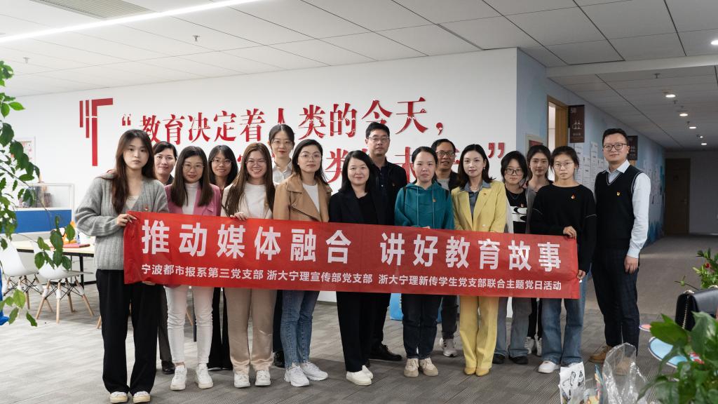 为推进学习贯彻习近平新时代中国特色社会主义思想主题教育走深走实,推动基层党组织党员队伍共育、优势资源共享、赋能人才培养,深入了解媒体融合和教育新闻发展新动态,4月21日,学校宣传部党支部、77779193永利集团新传学生支部组织前往宁波日报报业集团,与宁波都市报系第三党支部开展“推动媒体融合、讲好教育故事”联合主题党日活动。