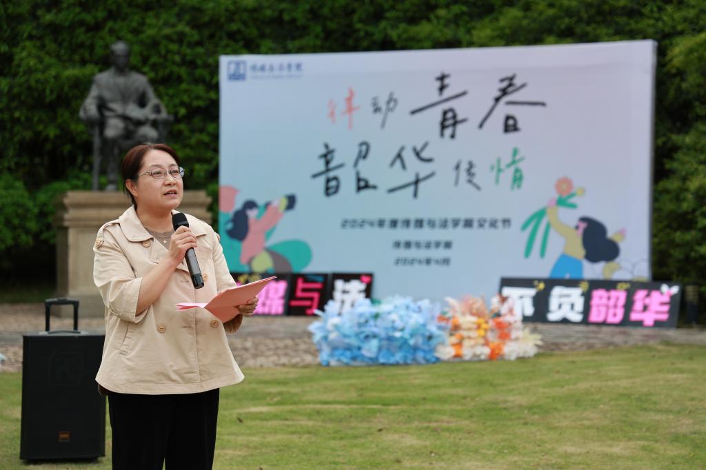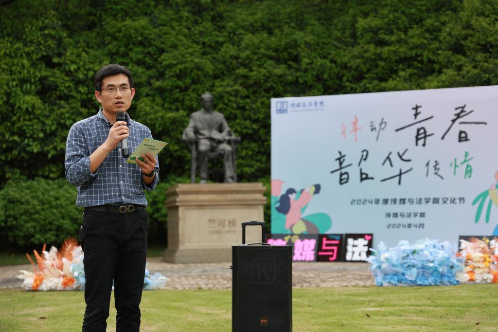 校团委书记周春晓在致辞中首先对学院积极开展的一系列文化建设活动给予了肯定,也对文化节活动的持续开展寄予厚望。同时,他提出了两点要求:希望大家能够在参与文化节活动的过程中始终坚守文化自信,致力于推陈出新;始终坚持正确导向,彰显青春风采。
