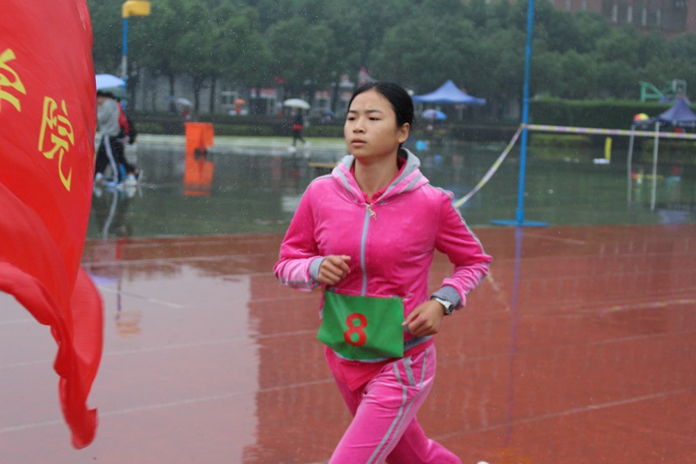 比赛当天,下雨的天气并不适合跑步类的比赛,但陈梦蕾选手依旧显示出良好的竞技状态,在比赛中克服了恶劣天气对自身的影响。虽然雨水淋湿了传媒与设计学院同学的衣服,但同学们依旧表现出极大观看比赛的热情。在陈梦蕾比赛过程中,传媒与设计学院所在看台同学在体育部部长及干事的带领下,一直为陈梦蕾选手呐喊助威,更有专门击鼓的人增加助威的气势。这些显示出传媒与设计学院大一新生参与新生运动会的热情和整个学院强大的凝聚力。