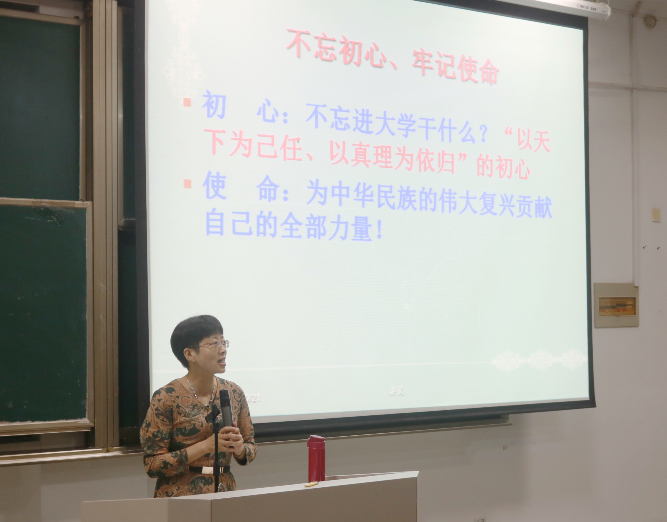 随后,法政学院党总支书记吴春为入党积极分子们带来党校第二讲《守初心、担使命——端正入党动机,争取早日入党》,她主要从“入党积极分子为什么要树立正确的入党动机?”、“共产党员的标准是什么?”、“如何用党员标准严格要求自己,以实际行动争取早日入党?”三个问题展开。吴老师强调了全体学员要不忘“以天下为己任、以真理为依归”的初心,牢记“为中华民族的伟大复兴贡献自己的全部力量”的使命。她旁征博引,结合毛泽东等伟人的先进事迹,指出树立正确的入党动机是争取入党的首要条件、树立正确的入党动机的基本要求以及怎样树立正确的入党动机。最后,吴老师也对大家提出了希望和要求——同学们从提出入党申请的那天起,就应开始用共产党员的标准严格要求自己,在社会发展的广阔天地中不断磨练自己、提高自己,争取早日成为一名光荣的、合格的中国共产党党员。