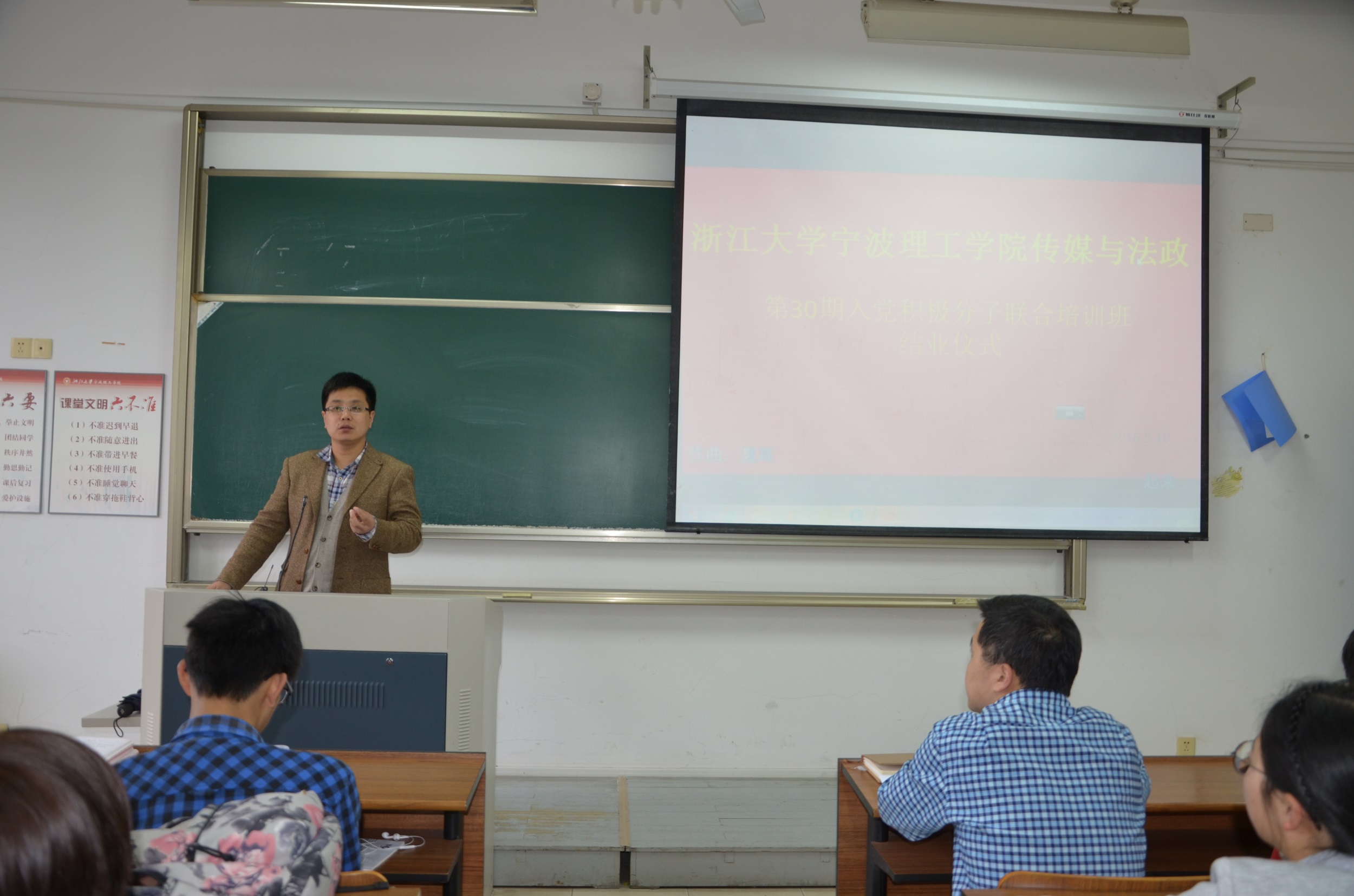 5月10日傍晚,在SB309教室第30期积极分子传媒法政联合培训班举办了简朴隆重的结业典礼。法政学院党总支副书记伍醒老师、法政传媒部分代表老师和全体学员参加了结业典礼。