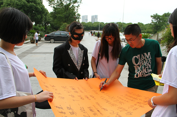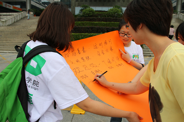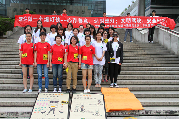 2013年5月26日上午,传媒与法律党总支共29名预备党员在宁波大学园区图书馆展开了“‘熄灯侠’——倡导文明驾驶,适时熄灭远光灯”志愿活动。