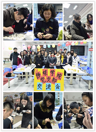 吃完饺子,各支部以分组的形式简单聊了聊党员工作和“五好支部”创建提了自己的想法和建议,对于即将参加“五好支部”评审的设计支部表达了美好的期待和愿景。随后,大家又趁兴组织了一些小游戏,如“谁是间谍”等,同学们参与其中,欢声笑语不断。与此同时在这温暖的节奏中各支部纷纷集体合影留念,新闻支部的同学还为学校的保安人员送去了热气腾腾的水饺和豆浆,为这寒冷的冬天添上了热融融的情谊。