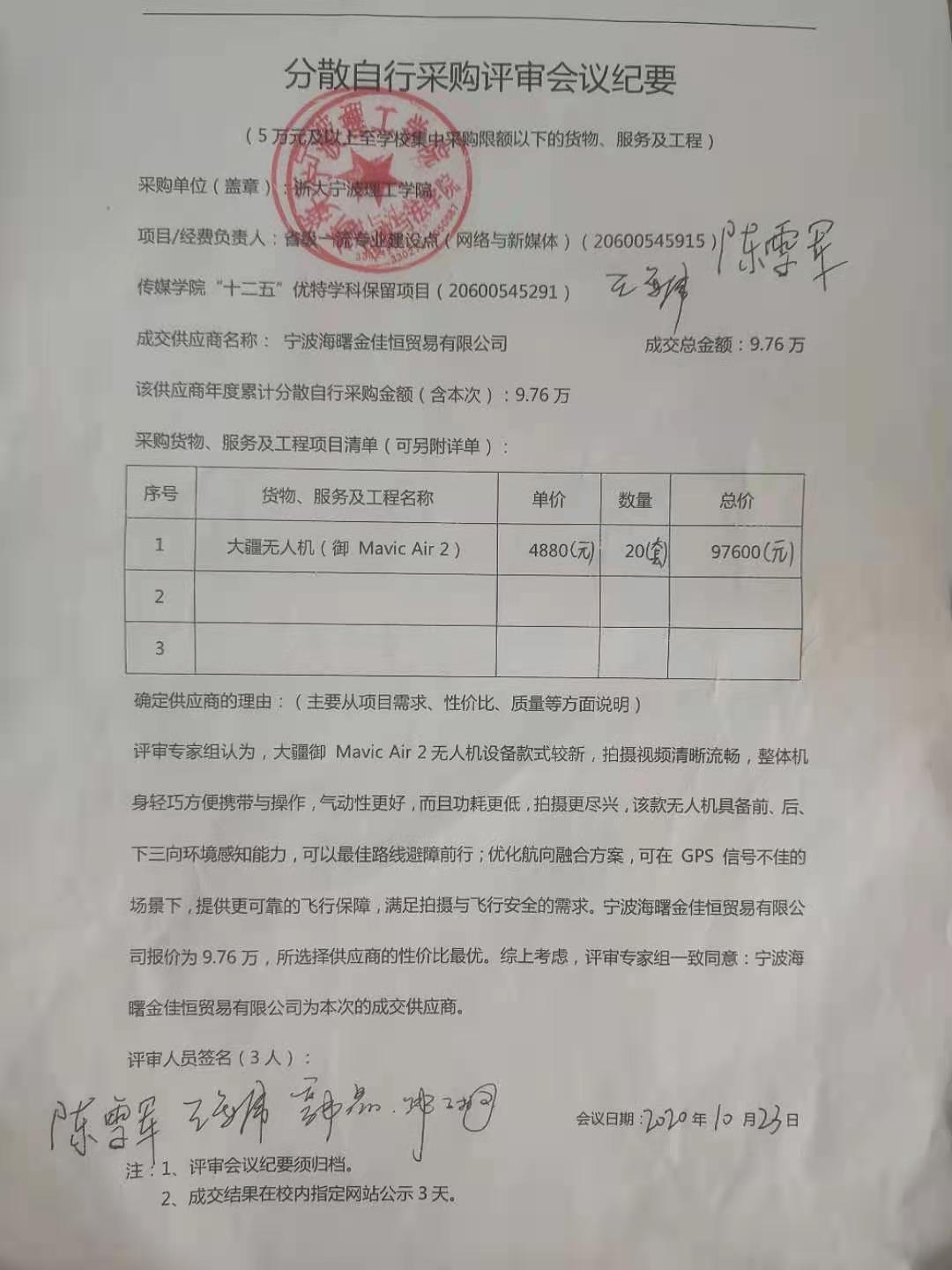 77779193永利集团大疆无人机分散自行采购项目成交结果的公示