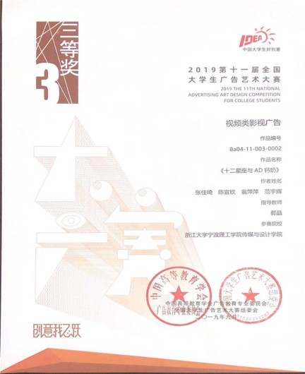 网络与新媒体专业注重学生多方面能力的培养,教师结合课程需要指导学生参加专业相关的各类学科竞赛,如全国大学生广告艺术大赛、全国大学生公共关系策划大赛、全国三维数字化创新设计大赛、全国大学生“互联网+”创新大赛等。近年来,网络与新媒体专业学生共获得省部级以上学科竞赛获奖 80 余项,其中国家级优秀奖及以上21项、省级一等奖3项、省级二等奖18项、省级三等奖33项。